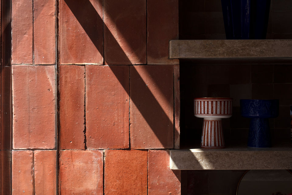 Inspired by nature, our color palette evokes the green of ancestral olive groves, the terracotta red of clay pottery, and the honey yellow reflecting the brilliance of the sun. These hues are offered in a variety of high-quality natural materials selected for their ability to capture and reflect light.